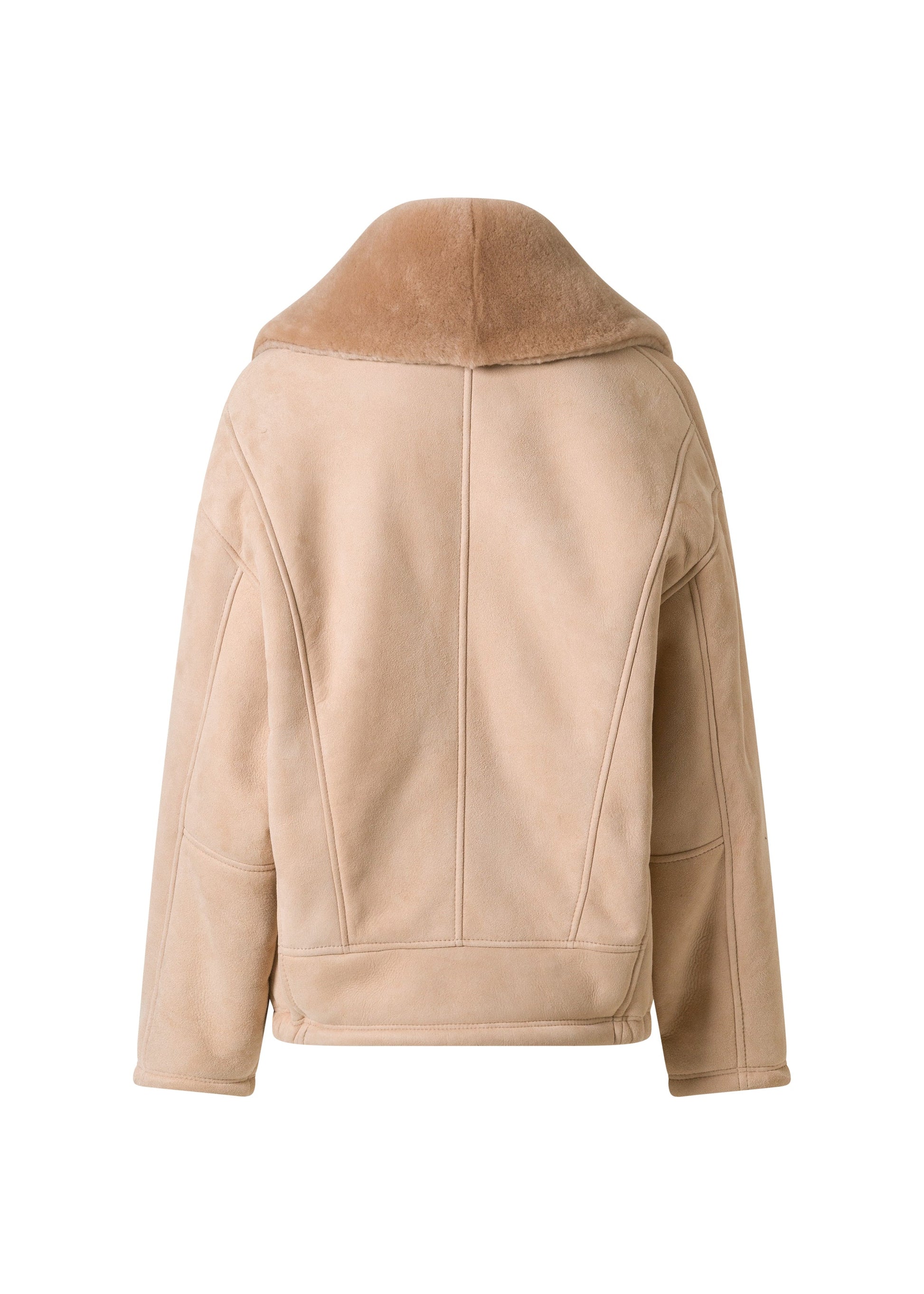 Crafted from premium curly lamb shearling in a light beige tone, the Aran Beige Shearling Jacket captures effortless sophistication and warmth.