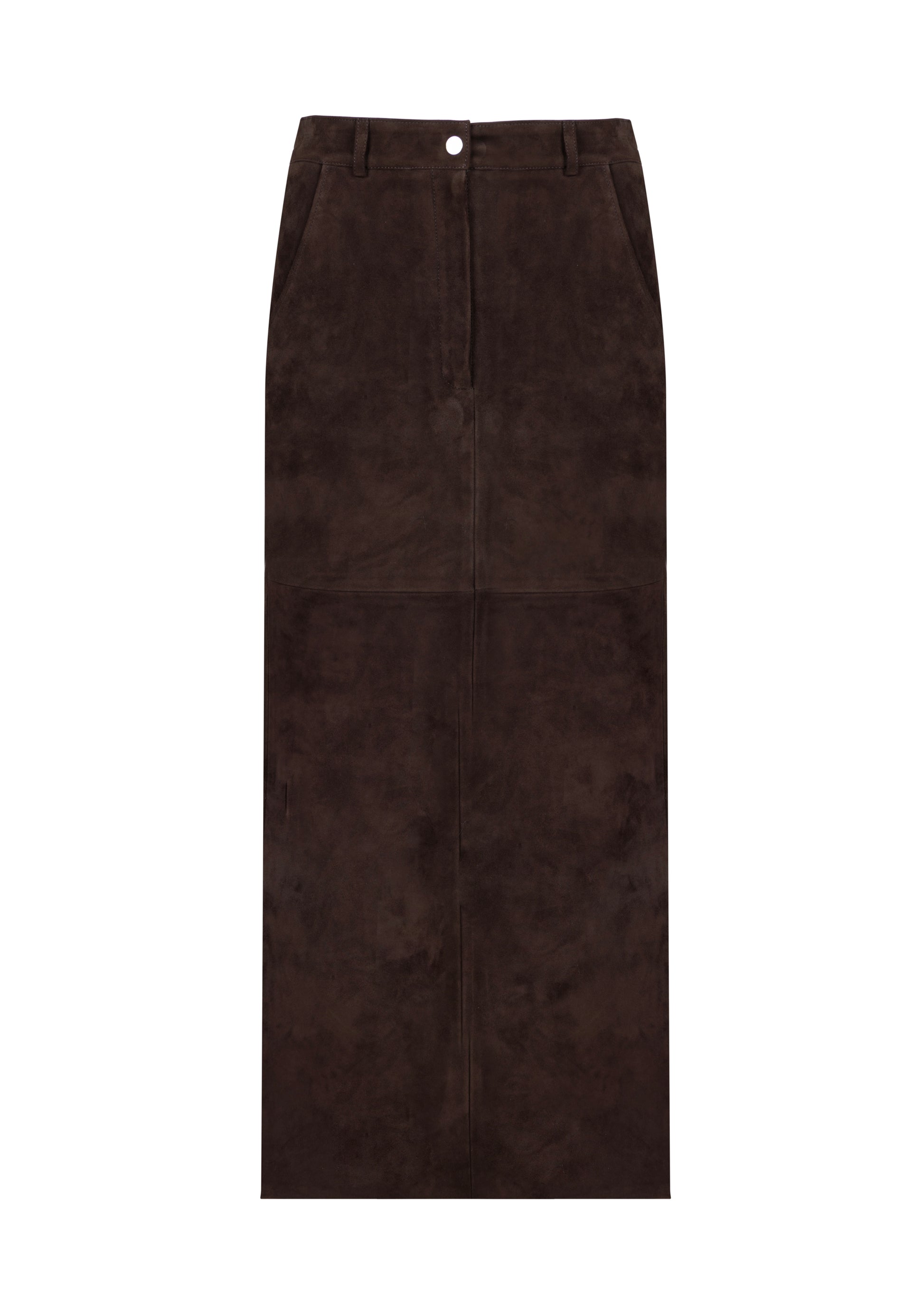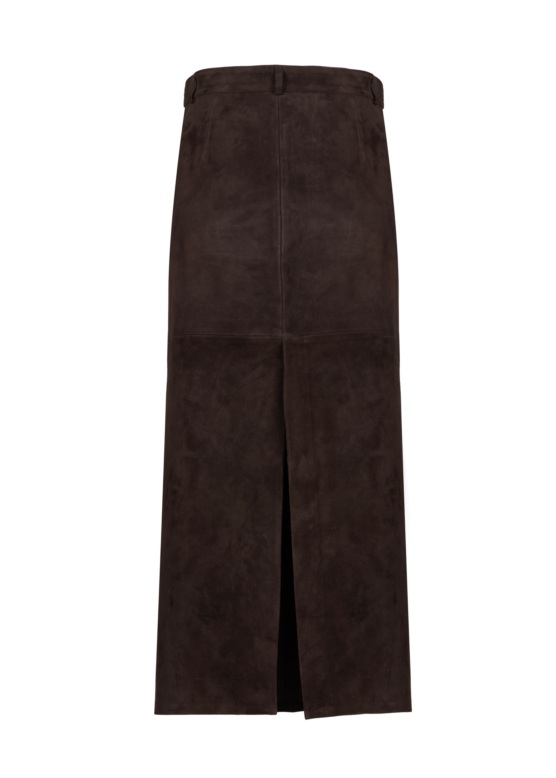 Embrace the effortless elegance of the 70s with the Marlene Noir Suede Skirt. Crafted from premium dark brown suede, this mid-length skirt combines a classic silhouette with contemporary details, making it a versatile addition to any wardrobe.