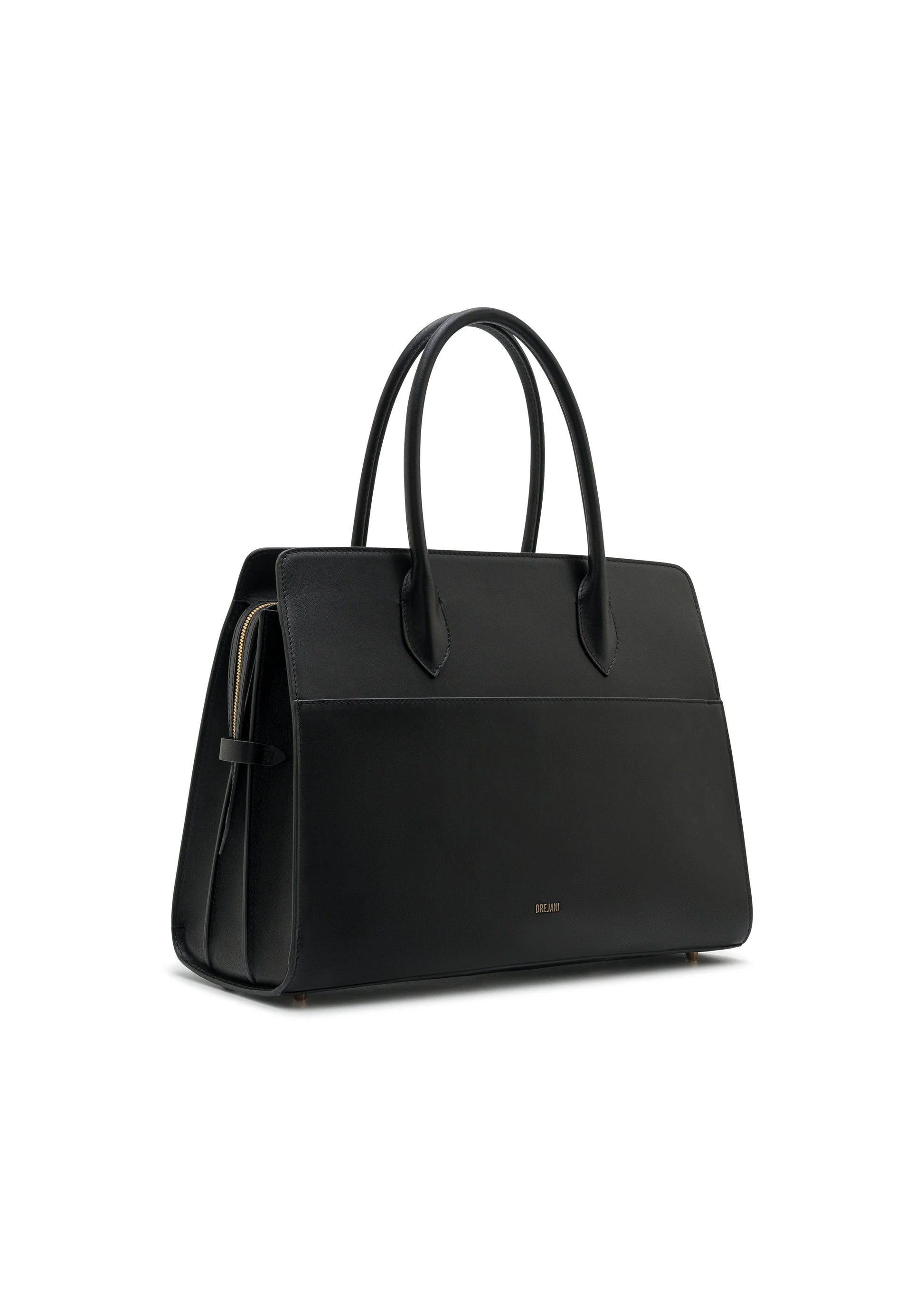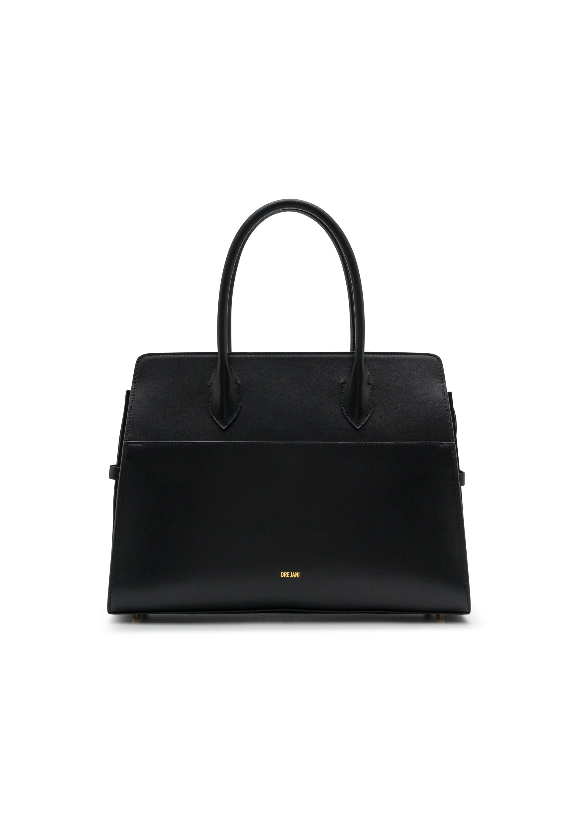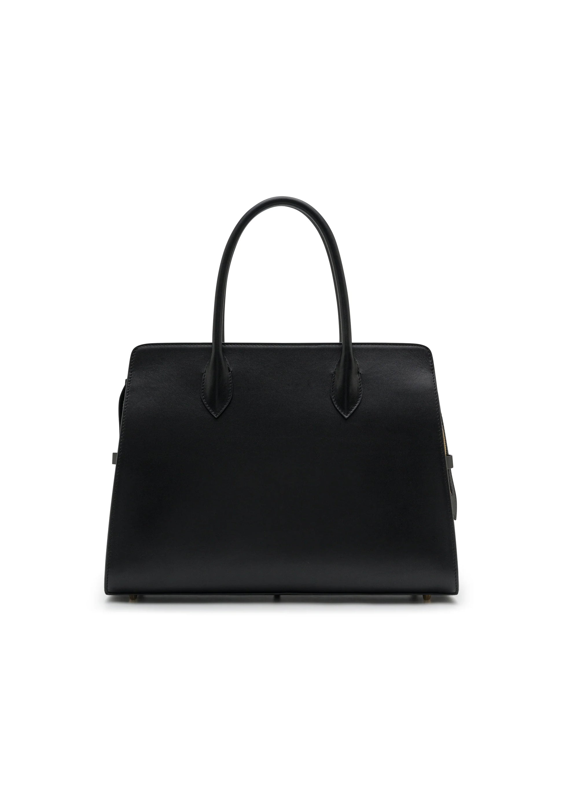The Valia Bag embodies refined strength and architectural precision. Crafted from smooth black cow leather, it combines structured form with minimalist sophistication. The dual-handle silhouette and gold-toned zipper create a timeless statement that transitions effortlessly from day to night. Designed to express modern elegance and everyday versatility.
