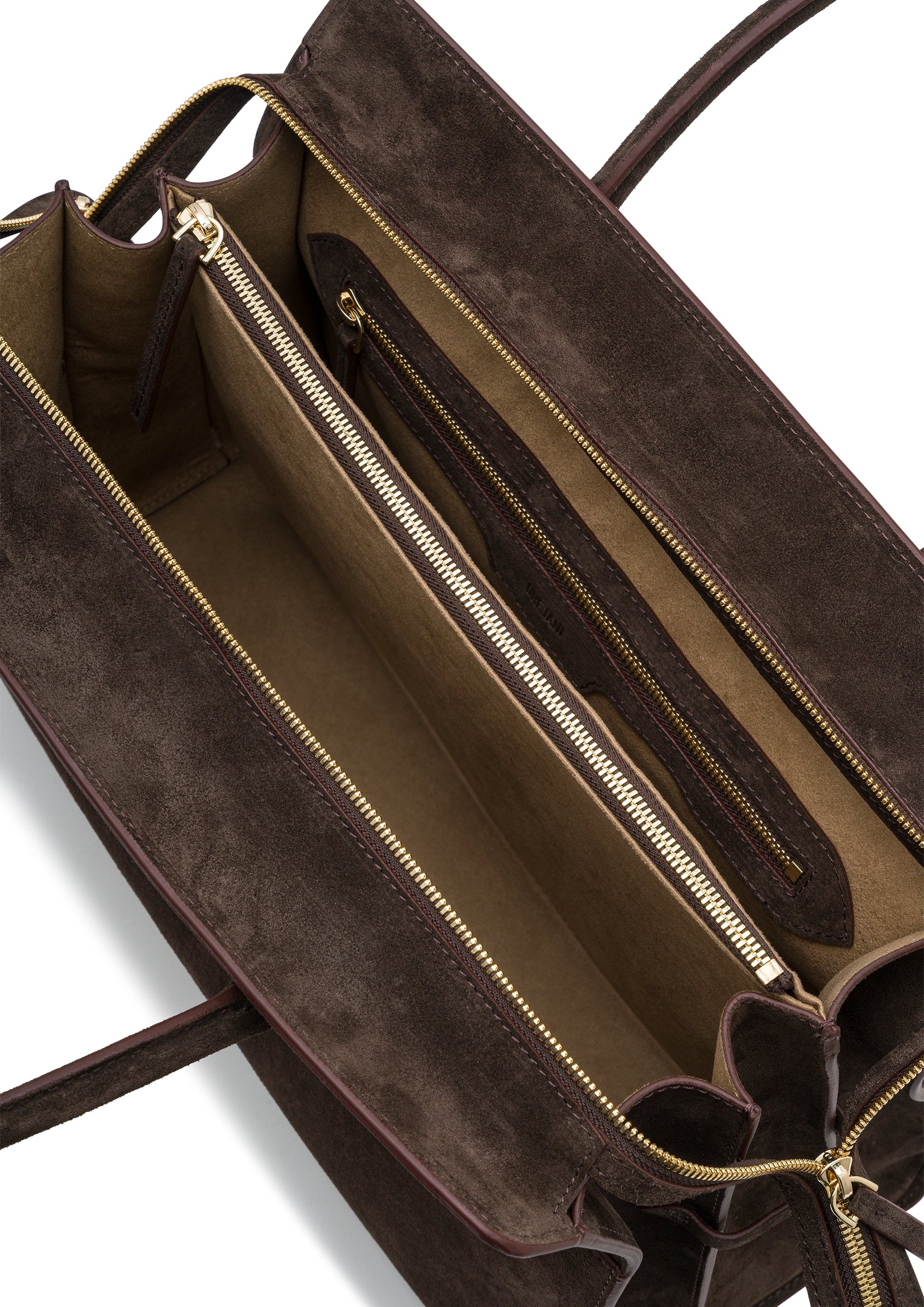 • Interior: Three compartments with central zip pocket